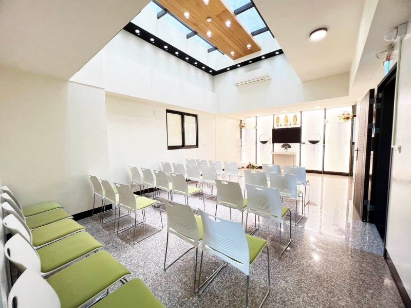 誦經室6樓,可容納30人左右,做七法事、告別式等皆可使用。含601、602房可作休息室。獨立廁所一間。