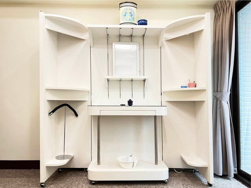 獨立團體休息空間,每日都有服務人員清潔打掃。 茶水間有瓶裝水可飲用。 靈堂內人數容納不下時,門外大廳也可以做休息使用。